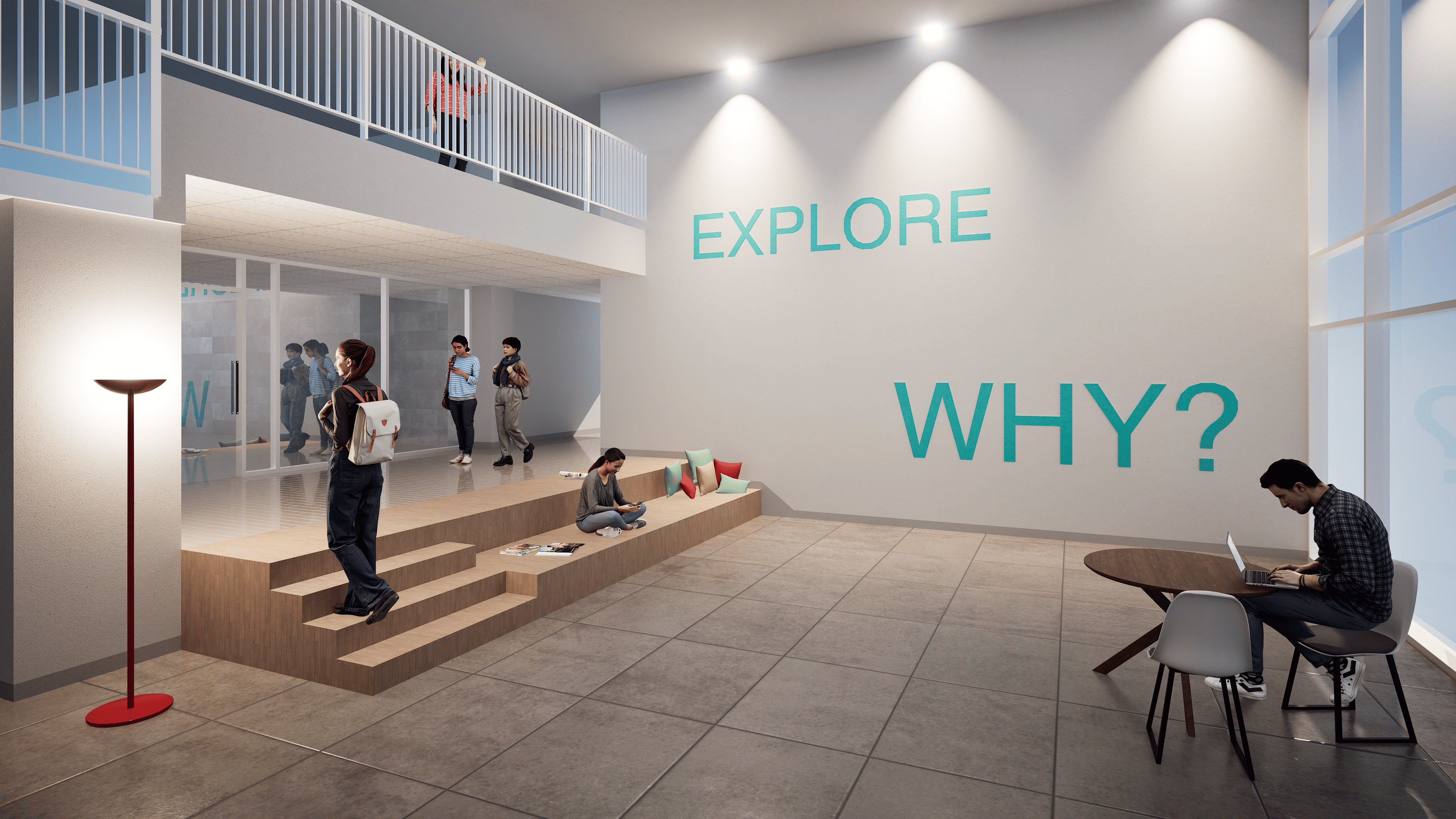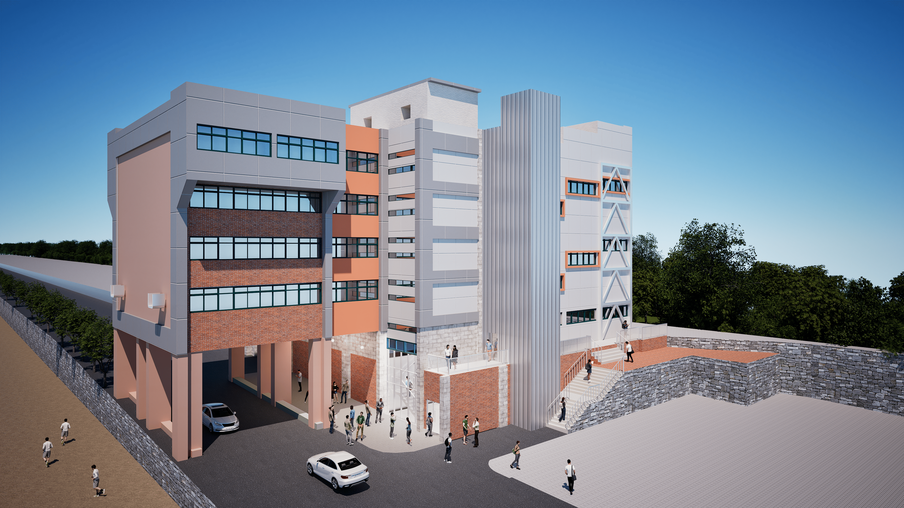 중학교 외부 및 내부에 새로운 순환동선과 유연한 공간을 생성하여 각 공간들이 연결됨으로써 학생 및 지역주민 모두가 즐겁게 이용할 수 있는 그린스마트 미래학교 제안