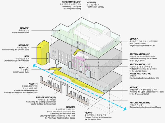 다양한 가치를 추구하는 서울 메이드 브랜드는 기존의 계획되던 고정된 공간에서 ‘장소를 넘어선 가치'라는 정체성에 맞춰 제시된 구성 프로그램을 성격, 특징에 따라 이분법적인 분리가 아닌 상호소통이 가능하며, 가번적이면서 새로운 공간을 제시